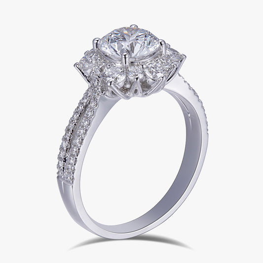 1.3 ctw Round Lab Grown Diamond Blooming Halo Engagement Ring