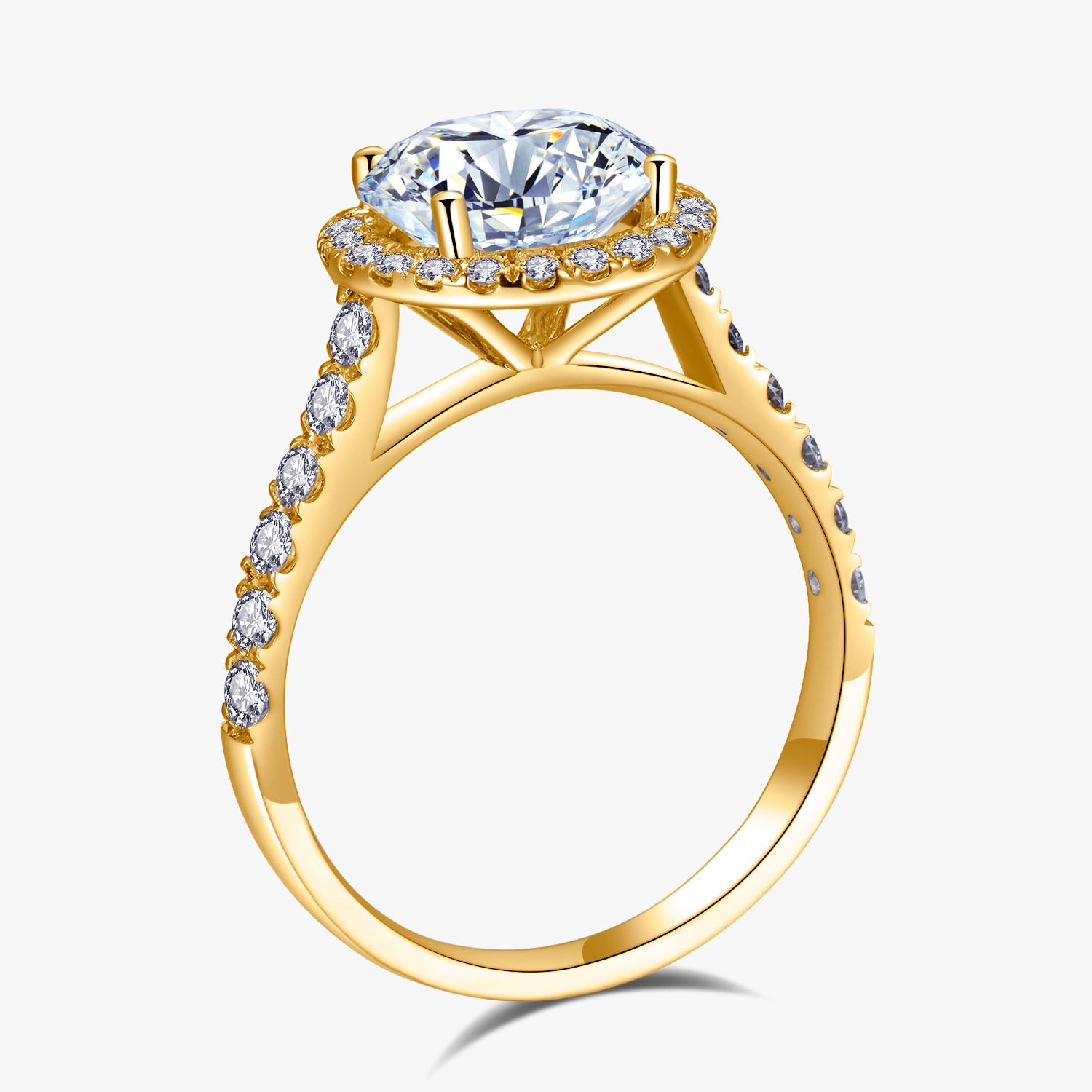 Discover the epitome of elegance and extravagance with our 2.5 carat round lab-grown diamond single halo engagement ring, set in stunning 14k yellow gold. This extraordinary piece isn't just a ring; it's a reflection of your love's grandeur, a testament to your commitment, and a symbol of your shared dreams. At its core is a resplendent 2.5 carat round lab-grown diamond, a gemstone that radiates magnificence and allure. Crafted with precision and care, this lab-grown diamond is indistinguishable from its natural counterparts, offering you a symbol of love that's as ethically responsible as it is breathtaking. The single halo setting, meticulously crafted in luminous 14k yellow gold, surrounds the central diamond with a sparkling embrace. This halo design not only adds extra brilliance but also symbolizes the eternal circle of your love, accentuating the significance of your commitment. The choice of 14k yellow gold enhances the ring's overall appeal, complementing the diamond's brilliance with its timeless and classic charm. Its purity and brilliance make it the perfect setting to showcase a diamond of this caliber. Our 2.5 carat round lab-grown diamond single halo engagement ring in 14k yellow gold is a symbol of your enduring love story and your shared aspirations for the future. It embodies the values of grandeur and responsibility, allowing you to express your love in the most elegant and ethical way. With this ring, you're not just celebrating your love – you're making a statement about your commitment to a sustainable future. Choose this 2.5 carat round lab-grown diamond single halo engagement ring and embark on a journey of love that is as magnificent as it is responsible. Elevate your engagement with a symbol of opulence, unity, and conscious choices, and let your love story shine brilliantly for generations to come.