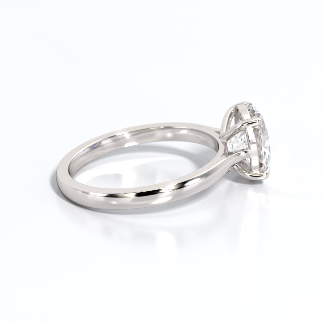At the heart of this engagement ring lies a brilliant oval lab-grown diamond, meticulously selected for its exceptional quality and unmatched sparkle. The FG color, representing a near-colorless diamond, ensures a pristine and transparent appearance, while the VS2 or better clarity guarantees that your diamond is virtually flawless. With every glance, this diamond radiates a captivating brilliance, symbolizing the brightness of your future together.
