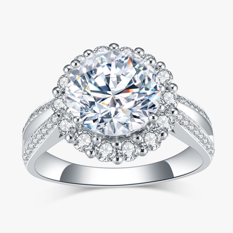 With this ring, you're not just celebrating your love; you're making a statement about your commitment to a sustainable future. Choose this 3.2 carat round lab-grown split shank halo engagement ring and embark on a journey of love that is as remarkable as it is responsible. Elevate your engagement with a symbol of grandeur, unity, and conscious choices, and let your love story shine brilliantly for generations to come.