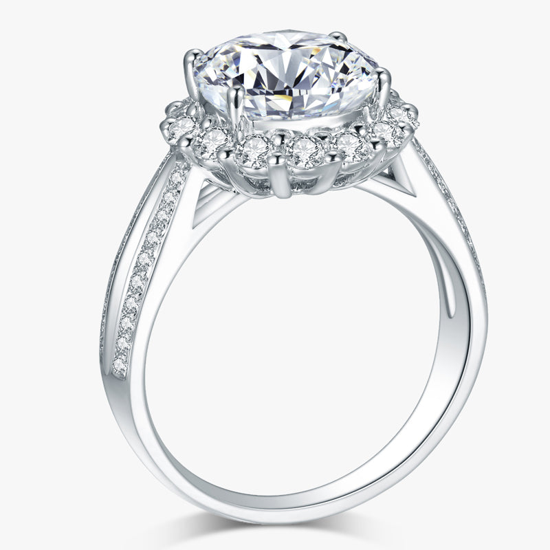The halo setting, encircling the central gemstone, enhances its magnificence like a radiant aura. This intricate design not only adds extra sparkle but also symbolizes the eternal halo of your love, making it the perfect choice for a commitment that radiates with grandeur.